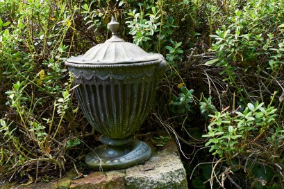 Lot Description:Pair of Regency Style Lead and Iron Covered Urns, c. 1890