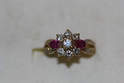 Lot Description:18ct yellow gold ruby & diamond dress ring