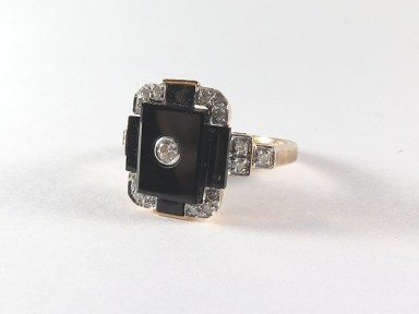 Lot Description:An Art Deco Style Black Onyx And Diamond Dress Ring