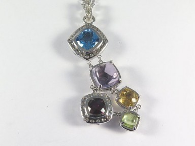 by Amellee with blue topaz, amethyst, citrine, garnet and peridot with a small white topaz; silver chain. -