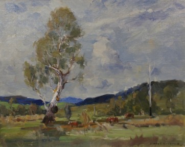 Notes:Dermont Hellier (1916-2006) was a well-regarded Melbourne artist, who studied at the NGV school with Charles Wheeler and Septimus Power and painted regularly with Ernest Buckmaster. He had numerous solo exhibitions in Australia and overseas and his work is represented in the collection of the Queensland Art Gallery and several regional galleries, as well as the Queen Mother's Collection at Clarence House.