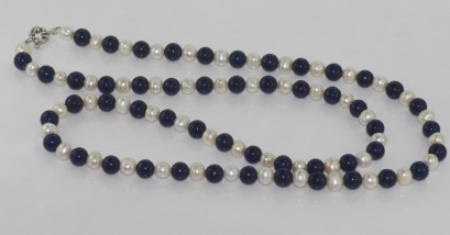 Lot Description:Pearl and lapis necklace with bolt clasp