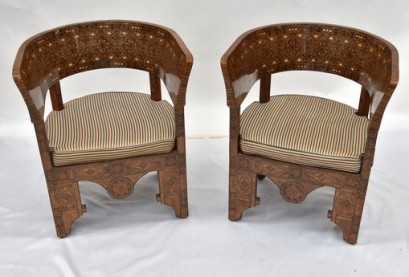 Lot Description:A Pair of 19th Century Syrian Inlaid Tub Chairs