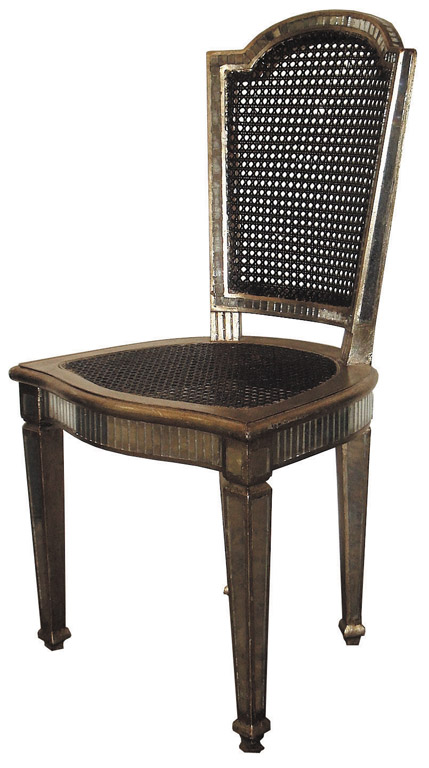 Lot Description:A pair of silver gilt and mirrored caned side chairs