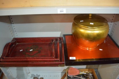 Lot #665 - Qty of lacquer ware oriental trays and lidded pot
