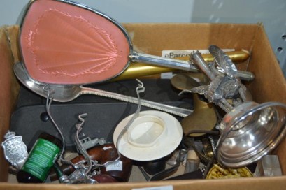 Edwardian dressing table mirror, spoons, etc -