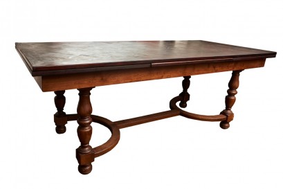 the rectangular top raised on turned baluster legs joined by a X stretcher