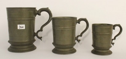 Lot #264 - A Set of Three Decorative English Pewter Mugs