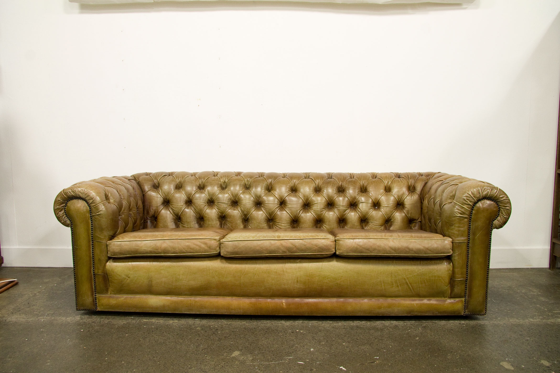 Lot Description:A Tan Leather Buttonback Chesterfield Sofa