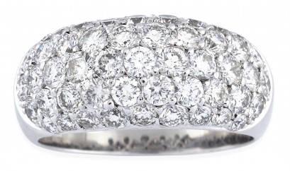 The wide domed band with pave set round brilliant cut diamonds totalling 3.37cts, in 18ct white gold, independent valuation available, ring size Q-R. -