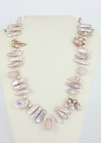 alternating rough and ovoid pink pearls with pear shaped Rose Quartz beads. Length 55cm. -