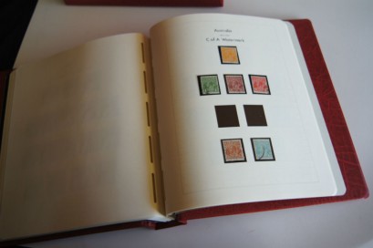 in red album, many pages empty or incomplete but still good selection, all stamps cover period from 1920's, 1930's