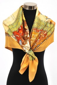 The ' Gloire d'Alexandre' design, featuring Alexander the Great on horse back, in colours of gold, red and green, 90cm square. -
