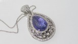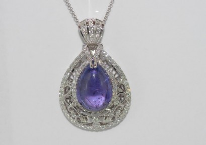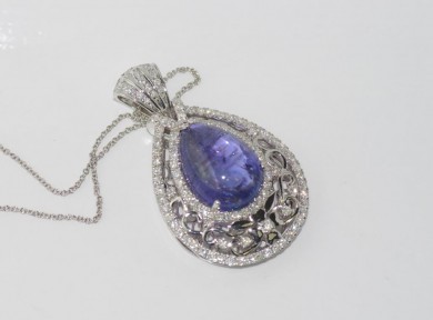 with 18ct white gold chain, comprising natural cabochon tanzanite 21.64ct, diamonds = 2.31ct H-I/SI1-2, total weight: approx 18.9 grams, valuation available -