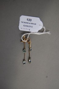 Lot #133 - Pair of vintage aquamarine and gold screw back earrings