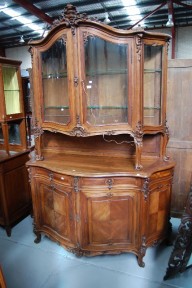 Lot Description:Fine antique French walnut bow front two height buffet