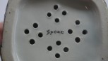 Bottom with pierced base. Lid in form of roof with 3 chimneys. Hand painted mark to base. (All as inspected: bottom has restored rim to inner. Roof with chipped edges and1 chimney chipped, but some broken pieces of chimney available.) H9cms (total). Early 19th century. -