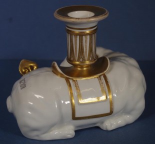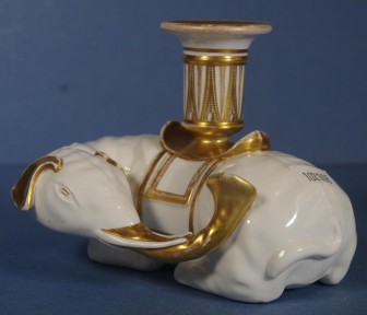 cream bone china recumbent elephant with gilded highlights. Hand painted Spode mark to base. H11cms approx. -