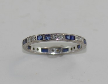 Lot Description:18ct white gold diamond & sapphire eternity ring