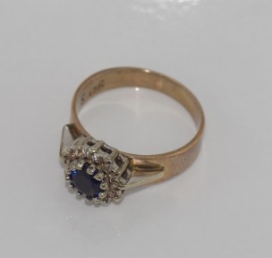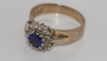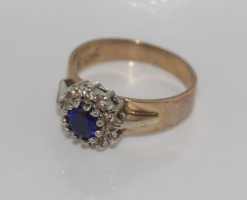 Lot Description:9ct yellow gold & synthetic sapphire ring