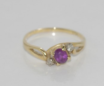 Lot #185 - 9ct gold, amethyst & diamond ring
