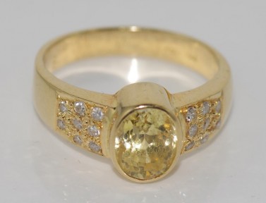 Lot Description:18ct yellow gold and yellow sapphire set ring