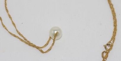 Lot Description:Cultured pearl on a fine 9ct gold chain