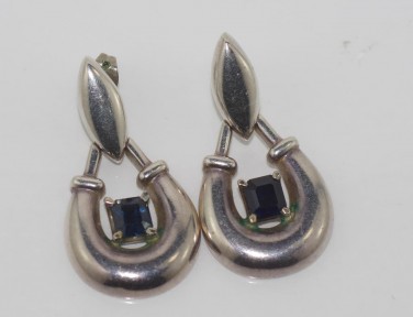 Lot #336 - Pair of modernist silver & sapphire earrings