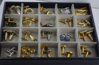 Lot Description:Tray of assorted vintage cufflinks & tie clips
