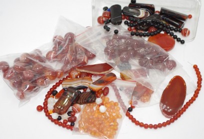 Lot #411 - Box of vintage agate & onyx stone beads