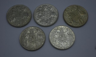 Lot Description:Five Australian 1966 silver 50 cent coins