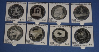 Lot Description:Eight Austrian 100 Schilling silver coins