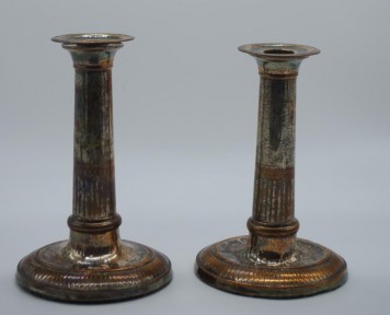 Lot Description:Pair of Old Sheffield Plate candlesticks