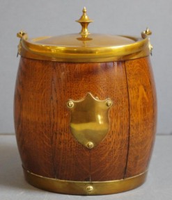 Lot #1386 - Vintage brass & oak biscuit barrel