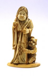 Lot Description:Japanese ivory monk & imp figure, C:1900