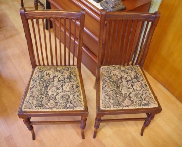 Lot Description:Pair of antique arts & crafts mahogany chairs