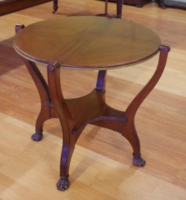 with a timber and a felt sided revolving top, on lion paw feet, 87cm x 87cm, 73.5cm high -