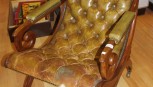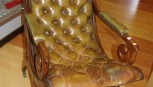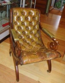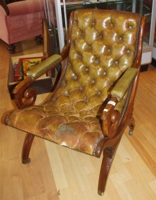 with X frame construction and deep buttoned leather upholstery, 59cm wide, 87cm high -