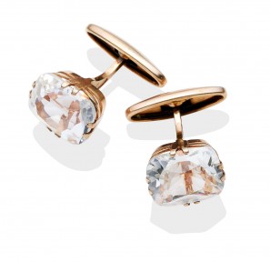 each with a cushion cut rock crystal, claw set in silver gilt. Russian hallmarks. -