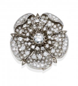 Lot Description:A diamond flower brooch, Berry’s Jewellers, Wellington