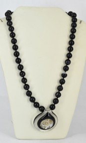 set on a black and white agate beaded necklace. Length pendant 4.5cm. Length necklace 52cm. -