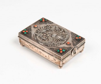 Lot Description:A Tibetan/Mongolian silver box, 20th century