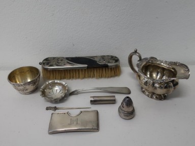 includes Austrian milk jug, Sterling card holder total weight 206grams not including brush -