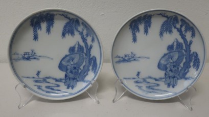 depicting a gentleman beneath a wide umbrella watching a leaping frog, measuring 16cm wide -