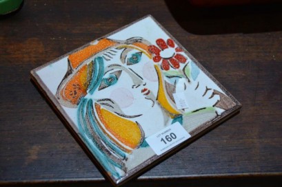 Lot #160 - Retro, hand painted tile