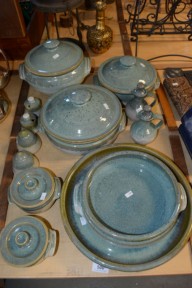 vinegar bottles, salt and pepper shakes, mustard pots, lidded ramekins, lidded casserole dishes -