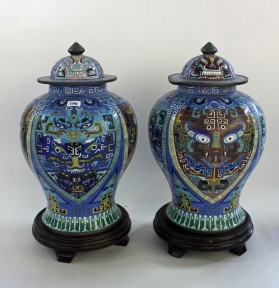 Lot Description:A Pair of Chinese Cloisonne Lidded Vases