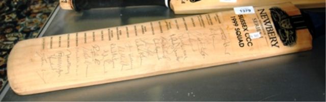 Lot #1379 - A full size cricket bat, bearing signatures of
