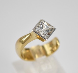 square cut cubic zirconia, bezel set. Size N. Weight 7g. -