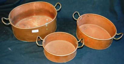 Lot Description:Collection of 3 x vintage oval copper cook pots